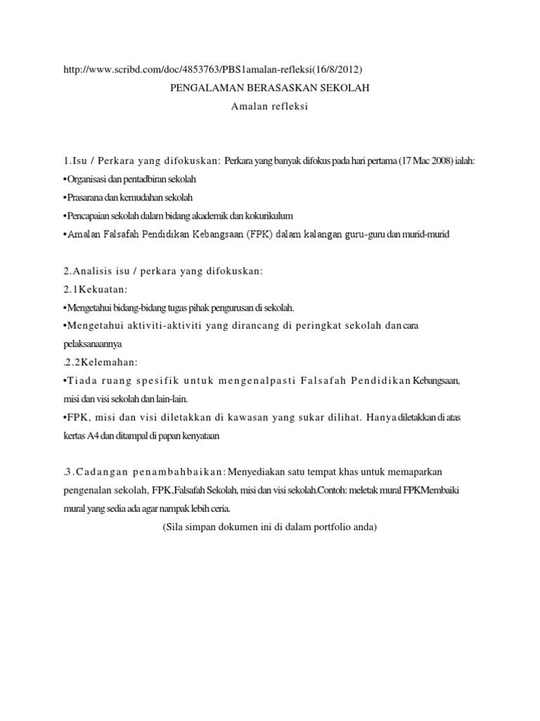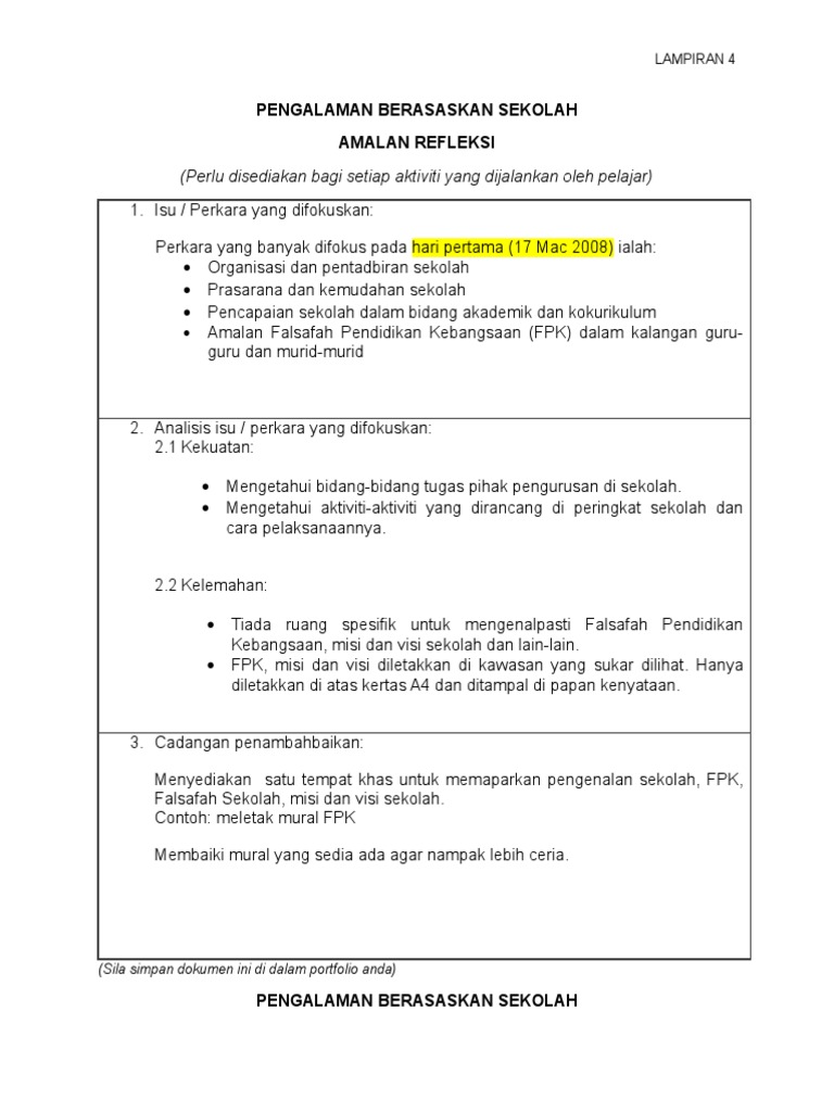 Baca versi flipbook dari Refleksi Pengalaman Berasaskan Sekolah. Memandangkan semester ini semua pelajar perlu memilih sekolah mengikut opsyen pada. Garis Panduan Pelaksanaan Amalan Profesional Pengalaman Berasaskan Sekolah.